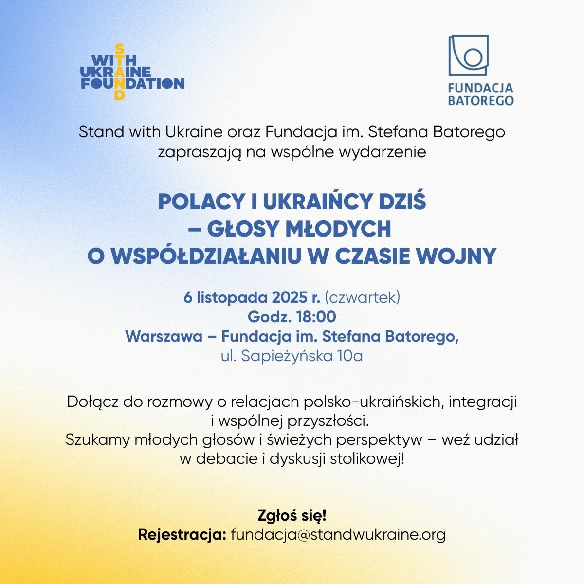Zapraszamy do udziału w wydarzeniu „Polacy i Ukraińcy dziś – głosy młodych o współdziałaniu w czasie wojny”, które organizujemy we współpracy z Stand with Ukraine Foundation.